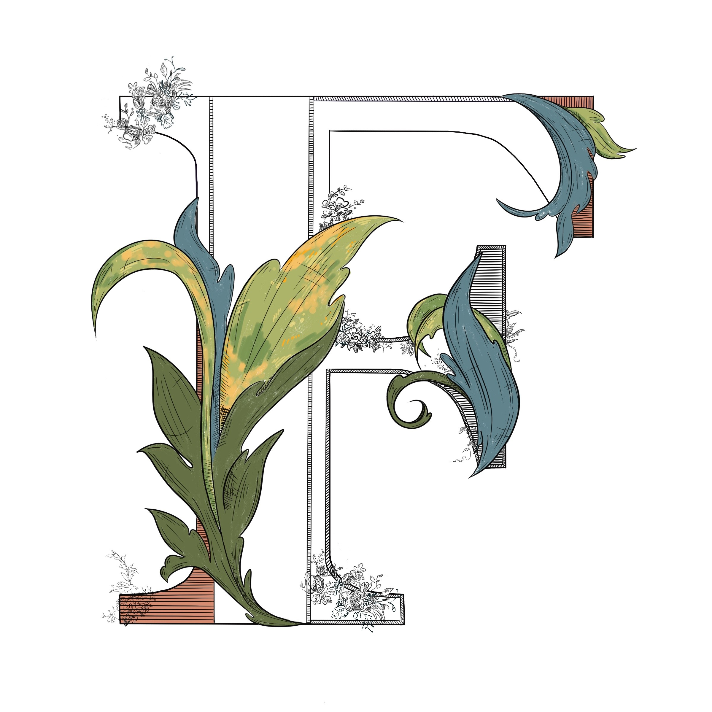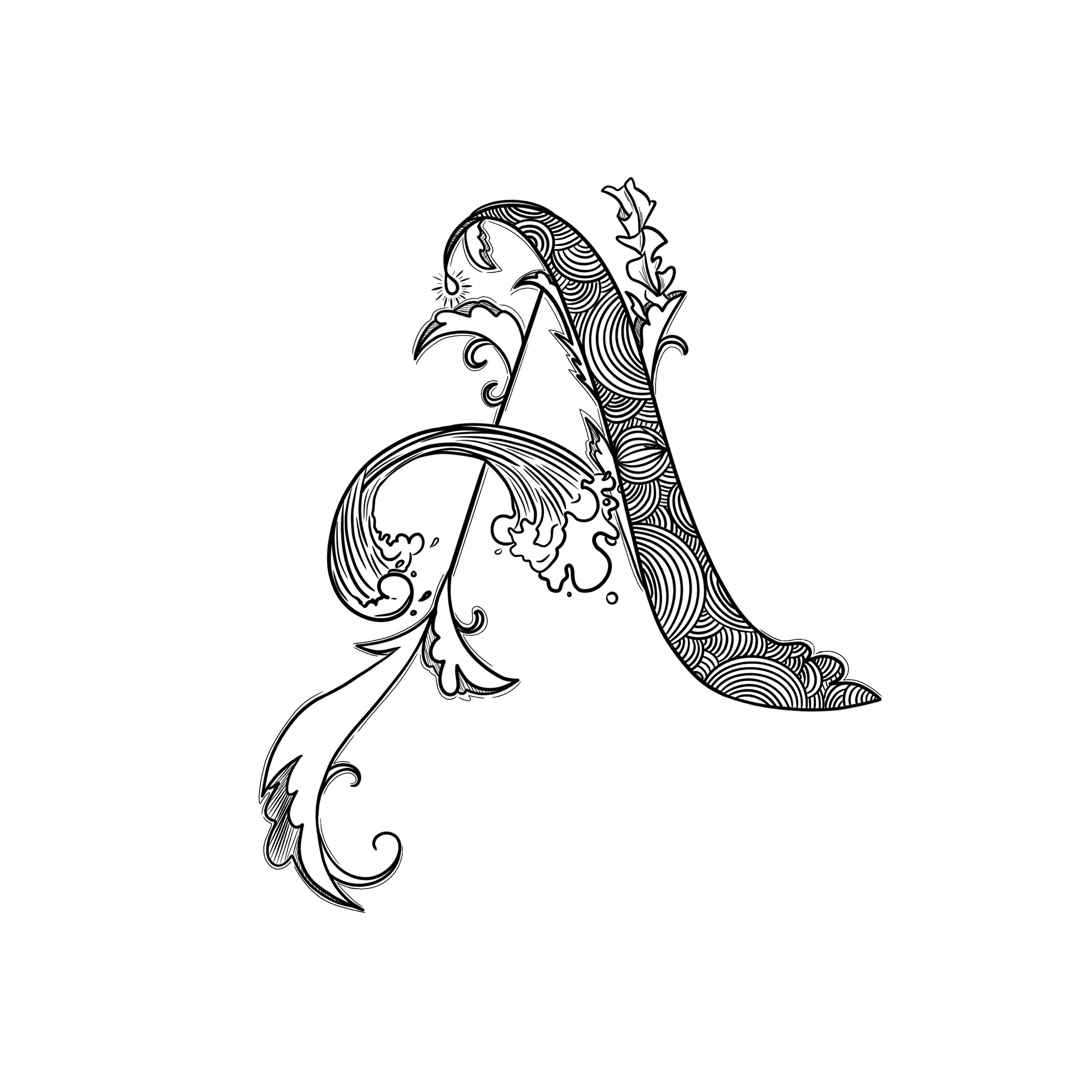 Collection of Drop Cap illustrations focusing on mark-making and texture.